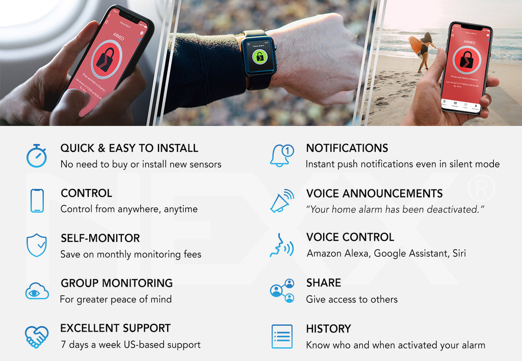 Nexx Smart Alarm delivers the power to arm, disarm, and self-monitor your home security – using the alarm system that’s already installed in your home.